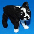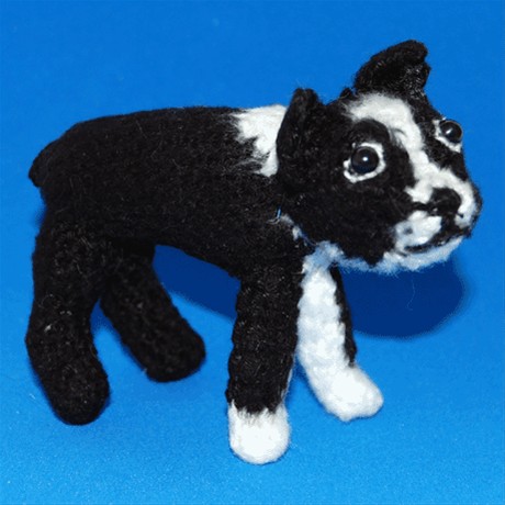 Snuffie the Boston Terrier is contained in the pattern. Here is a tough and lovable little dog. He stands about four inches tall and five inches from nose to tail.