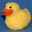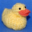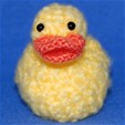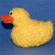 This adorable bathtub playmate is reproduced in detailed crochet. It stands four and a half inches long by three inches wide by three and a half inches tall.
